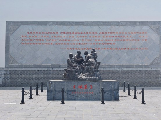 清晨的皖中平原綠意盎然,團(tuán)隊(duì)成員懷著對鄉(xiāng)土文化的熱忱與對改革故事的好奇,踏上前往小井莊的旅程。抵達(dá)目的地,“中國農(nóng)村包產(chǎn)到戶發(fā)源地之一”的石碑矗立眼前,無聲訴說著這里的特殊歷史地位。當(dāng)?shù)刂v解員以“要吃飯,包田到戶干”的時(shí)代吶喊為起點(diǎn),拉開了小井莊改革故事的序幕。