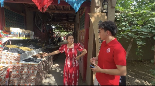 浸潤民俗文化:感受傳承力量與青春擔當除產業調研外,學習維吾爾族傳統葡萄文化民俗知識是實踐團的另一重要任務。在景區民俗區域,成員們通過走進王洛賓音樂藝術館,聆聽《在那遙遠的地方》等經典民歌,感受音樂與葡萄文化的交融;走訪達瓦孜民俗風情園,體驗高空走繩等傳統技藝表演;探訪青蛙巷特色街區,深入了解維吾爾族與葡萄相關的節慶、手工藝及飲食文化。“從葡萄架下的民俗故事,到代代相傳的種植技藝,再到今日鮮活的民俗體驗,文化的生命力就藏在這些細節里。”實踐團成員烏力凡感慨道。此次實踐讓團隊深刻認識到,文化傳承不僅是技藝的延續,更是民族精神的紐帶。