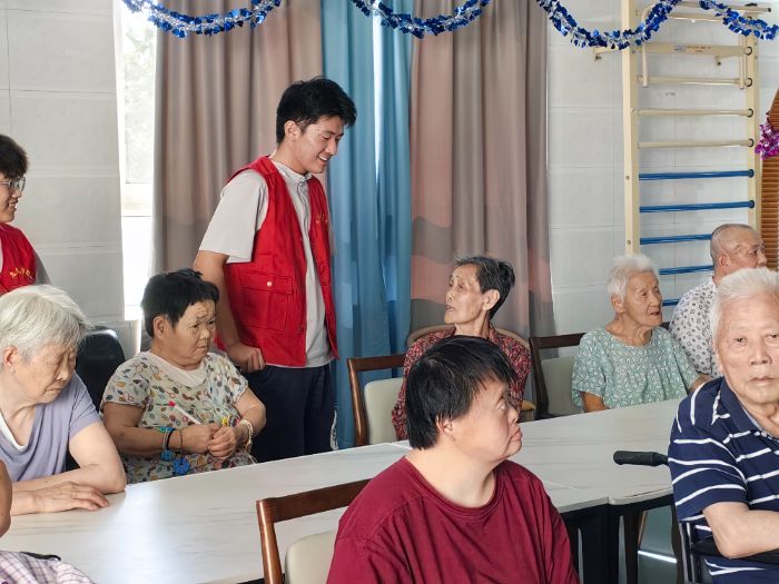 除了藝術墻的繪制,同學們還為老人們精心準備了一系列豐富多彩的服務活動。在健康講座環節,同學們運用所學的專業知識,為老人們講解常見疾病的預防和保健知識。他們制作了生動形象的PPT,用通俗易懂的語言介紹高血壓、糖尿病等慢性病的癥狀、危害以及日常護理方法。為了讓老人們更好地理解,還現場演示了一些簡單的按摩手法和康復訓練動作,鼓勵老人們在日常生活中堅持鍛煉,保持健康的生活方式。老人們聽得十分認真,不時提出自己的疑問,同學們都耐心地一一解答。一位老人笑著說:“這些知識對我們太有用了,謝謝你們這些孩子,讓我們懂得了如何更好地照顧自己。”