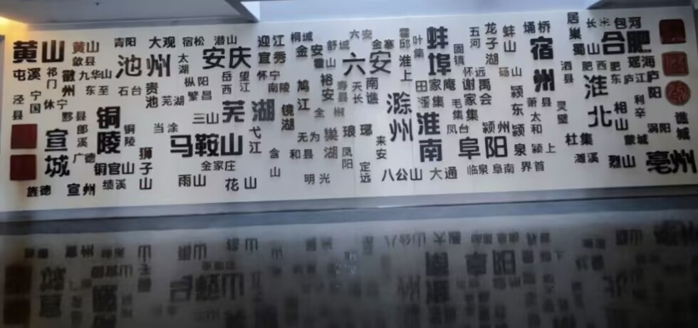 “安徽文房四寶”“江淮擷珍”等展廳,展現了安徽深厚的文化底蘊。文房四寶曾見證了無數革命志士寫下激昂的戰斗檄文,江淮大地的珍寶則承載著人民對美好生活的向往,這與紅色革命追求民族獨立、人民幸福的目標高度契合。安徽地名墻更是串聯起一個個紅色地標,從大別山到皖西革命根據地,每一個地名都鐫刻著紅色記憶,訴說著安徽人民在革命年代的英勇壯舉。