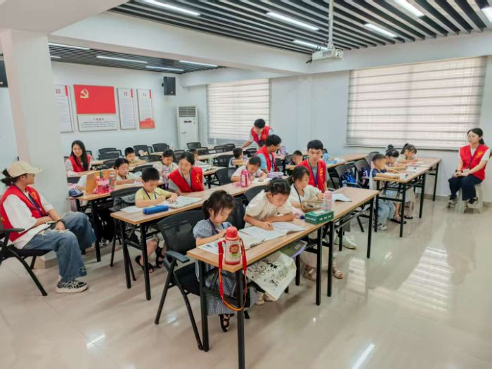 愛國教育是青少年成長過程中不可或缺的一課,它不僅是傳承紅色基因、弘揚民族精神的關鍵途徑,更是培養青少年責任意識與家國情懷的重要方式。杭師大的志愿者們在互動過程中也開展了形式多樣的愛國教育活動,通過理論與實踐相結合的方式,引導學生深入了解家鄉歷史、感悟國家發展,進一步激發愛國熱情。
