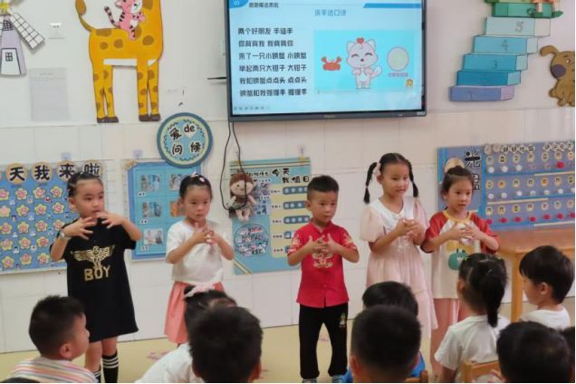 隨后,志愿者們便帶領孩子們一步步實踐起來,孩子們跟著口訣伸出手,認真揉搓掌心;交叉清洗起手背的指縫。在最后的課堂回顧中,孩子們積極舉手回答,整個過程充滿了歡樂與收獲。