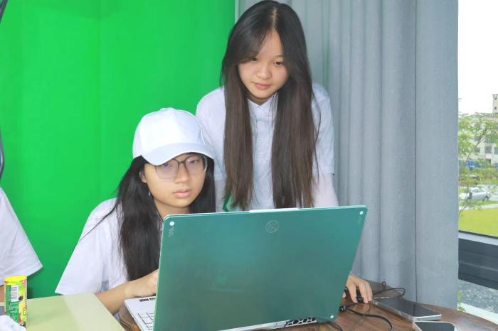 圖為隊長與隊員分析直播后臺數據(鄧瑞莊攝)