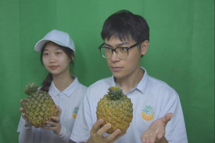 抵達果園后,在隊長的指導下,隊員們迅速進行設備的有序擺放以及直播棚的搭建。做足充分準備后,隊員們立即開啟“芒果鳳梨”專場助農直播,認真介紹芒果鳳梨的品種特點以及其營養價值。直播的順利進行,推動了特色農產品宣傳的同時,也助力了鄉村產業,拓寬了芒果鳳梨的消費渠道。