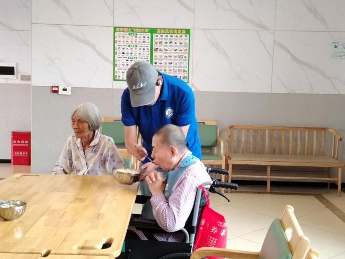 在用餐時段,志愿者們主動前往餐廳協助工作人員,參與餐前準備、餐食有序分發以及餐后清潔整理等環節,有效分擔了養老院護工的壓力,保障了老人們用餐的便捷與舒心。