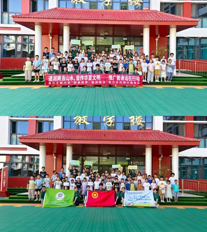 浙江工商大學“推普筑夢,語潤兩當”暑期社會實踐隊小隊在金洞小學的合影