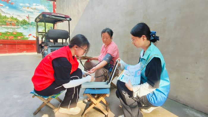 在左西村,實踐團隊分為三個小組展開活動。入戶調(diào)研與扶助孤老小組的隊員們輕叩門扉,帶著溫暖的微笑走進每家每戶。他們細致地為村民進行健康問詢,建立個人健康檔案,重點關注慢性病管理情況,并貼心地為老人測量血壓、血糖。在交流中,志愿者們用通俗易懂的語言講解季節(jié)性傳染病防控知識,手把手示范"七步洗手法",還特別針對農(nóng)村飲食習慣,給出科學膳食建議。