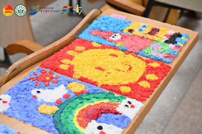 我們選擇在南澳島開展紙漿畫教學,正是考慮到當地孩子對自然與海洋的親近感:“希望他們能把對家鄉的熱愛融入作品,讓非遺工藝與本土文化碰撞出火花。”下課鈴響時,多數孩子已完成作品的主體部分,正小心翼翼地將其放到教室后排的通風架上晾干。這些帶著孩子氣的作品,雖略顯稚嫩,卻承載著孩子們對非遺文化的初體驗。在這堂特殊的美育課上,廢舊紙張蛻變成藝術品,非遺的種子也悄然在孩子們心中扎下了根。