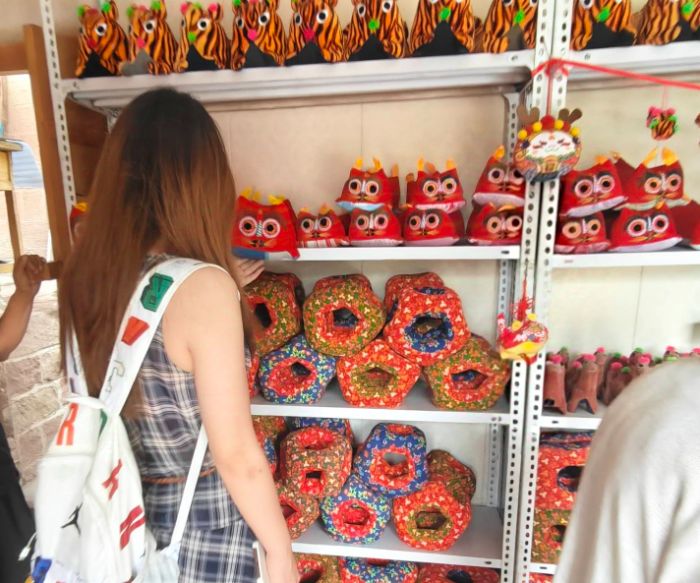 隨后,實踐隊走訪了當地傳統手工藝作坊。在布藝制作區,隊員們近距離觀摩了富有地方特色的手工藝品制作過程,并與手工藝人交流探討傳統技藝的保護與傳承問題。這些精美的手工藝品不僅展現了精湛的技藝,更承載著豐富的文化內涵。