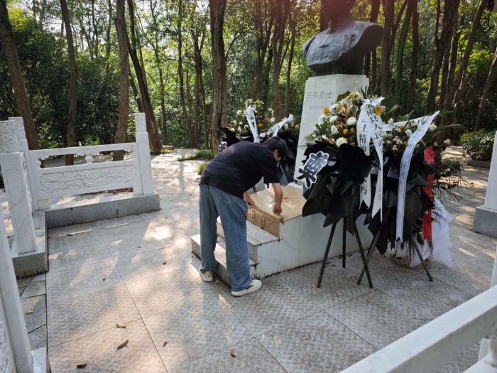 隨后,陵園工作人員講述了王楓烈士的英勇事跡:1948年,時任區委書記的王楓為掩護群眾轉移,孤身引開敵人,最終在突圍中壯烈犧牲,年僅23歲。“王楓烈士犧牲前留下的最后一句話是‘一定要讓鄉親們安全’。”聽到這里,許多同學潸然淚下。團隊成員周家樂在筆記中寫道:“站在這片浸透鮮血的土地上,我真切感受到和平年代的來之不易,更覺青年一代使命在肩。”