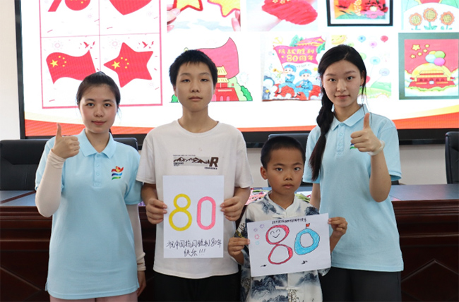 為慶祝抗戰勝利80周年,隊員們還錄制了小朋友們對祖國的祝福視頻。孩子們紛紛對著鏡頭說出自己的心里話:“祝祖國繁榮昌盛,越來越強大!”“我要好好學習,長大后為祖國做貢獻!”一句句樸實的話語,表達了孩子們對祖國深深的祝福和熱愛。