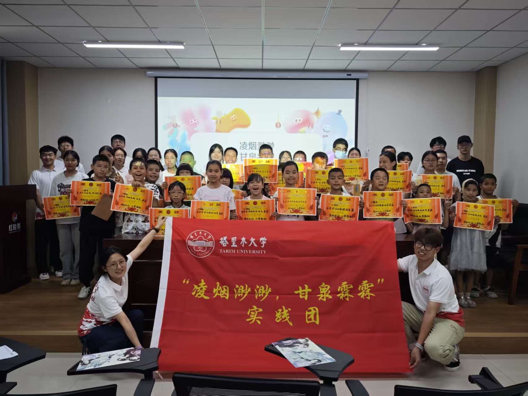 ▲圖為庫爾勒市東方社區實踐團成員與青少年集體合影