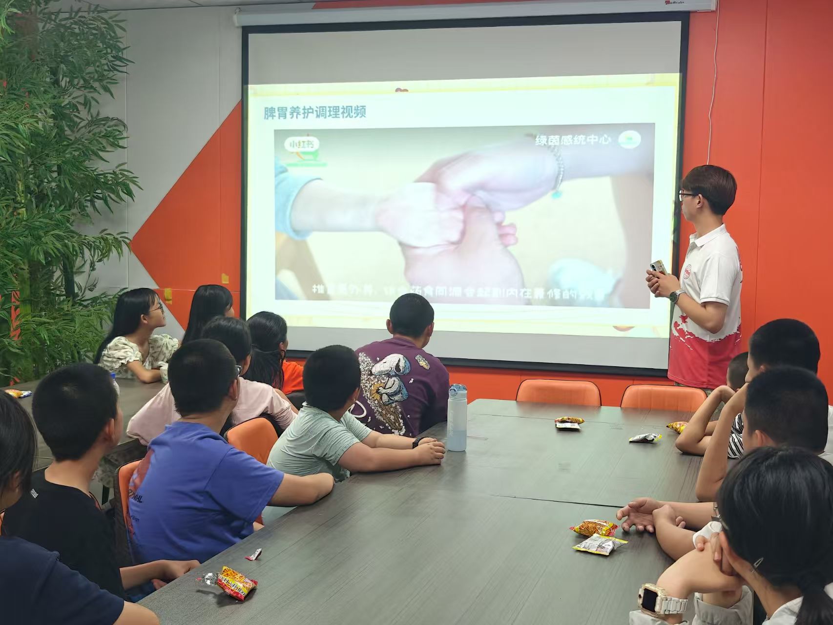 活動最后,現場播放了脾胃養護調理視頻,內容涵蓋日常作息、情緒管理與脾胃健康的關系,以及簡單的穴位按摩、腹部按摩方法,從飲食、生活習慣等多維度為青少年提供了脾胃養護的實用指南。