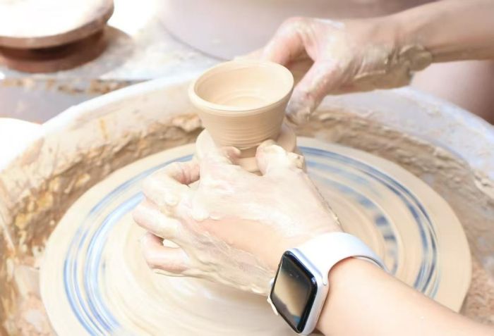 圖為實(shí)踐隊(duì)員現(xiàn)場(chǎng)感受手工拉坯過(guò)程。王晶供圖