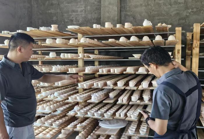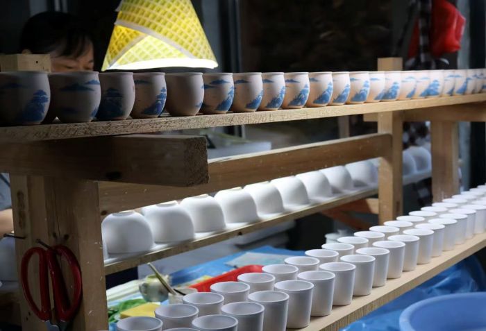 圖為作坊內(nèi)素胚整齊排列。王晶供圖
