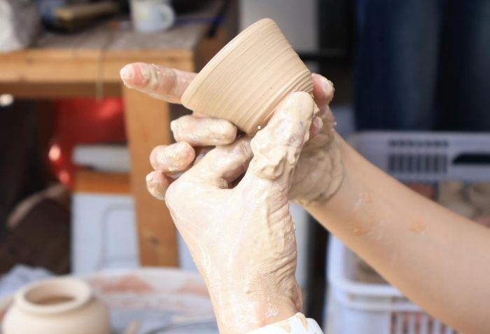 陶藝傳承人小蔡為實踐隊員現場演示手工拉坯技藝,生動展現了陶瓷制作的關鍵初始環節。她憑借嫻熟的專業手法,通過精準的“一扶一壓”,使陶泥在轉盤上逐步成型,一件陶瓷器的雛形漸漸清晰可見。此次展示不僅是一場技術教學的示范,更是對傳統文化精髓的深入闡釋。隊員們通過近距離觀摩與實操體驗,進一步加深了對非物質文化遺產的理解與認同,切身感受到傳統手工藝蘊含的技藝魅力與文化價值。