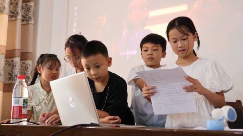 圖為支教班小朋友進行普通話配音 譚皓澤攝