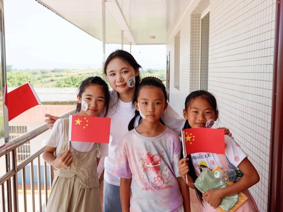 圖為實踐隊成員和小朋友們的自制紅旗展示。肖云杰 供圖
