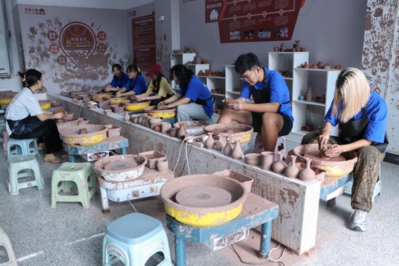 圖為實踐隊成員在榮縣土陶創(chuàng)意園進(jìn)行制陶體驗。肖云杰供圖