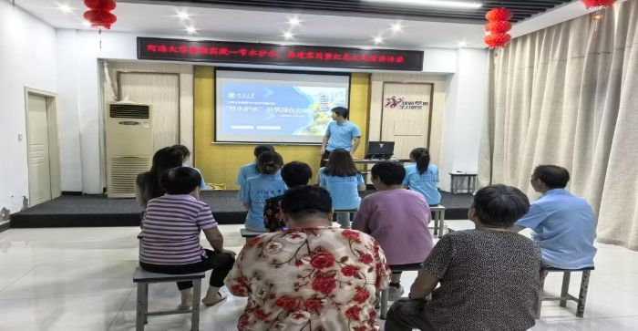 活動現場,老人們對節水知識滿懷好奇與關注,提前抵達等候。實踐團成員作為演講者,借助提前準備好的 PPT,以直觀清晰的圖片呈現我國水資源分布、短缺區域等地理概況,用詳實的數據 —— 如部分地區人均水資源占有量、年缺水量等,向老人們清晰展示我國水資源短缺的嚴峻現狀。