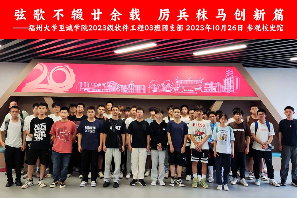 2023年是福州大學(xué)至誠(chéng)學(xué)院成立20周年,為慶祝至誠(chéng)學(xué)院二十周年慶,引導(dǎo)青年深學(xué)細(xì)悟篤行,激發(fā)強(qiáng)國(guó)有我的青春激情。福州大學(xué)至誠(chéng)學(xué)院2023級(jí)軟件工程03班團(tuán)支部舉辦“弦歌不輟廿余載,厲兵秣馬創(chuàng)新篇”系列活動(dòng)。