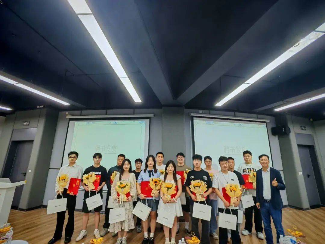 隨后,金世進總監逐一為本次錄用的畢業生代表頒發象征職業起點的錄用Offer聘書。學校領導、企業代表與畢業生在現場進行深入而融洽的自由交流,圍繞未來校企合作方向、職業發展規劃、崗位能力需求等話題展開討論交流,現場氣氛溫馨而充滿活力。